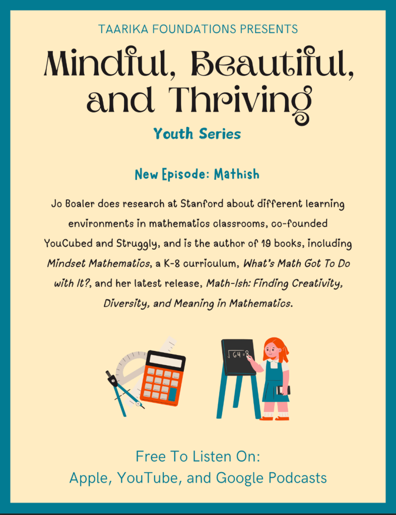 In this episode, Seerat interviews Jo Boaler. Dr. Boaler does research at Stanford about different learning environments in mathematics classrooms, co-founded YouCubed and Struggly, and is the author of 19 books, including Mindset Mathematics, a K-8 curriculum, What’s Math Got To Do with It?, and her latest release, Math-Ish: Finding Creativity, Diversity, and Meaning in Mathematics. They discuss her work in mathematics education and the aspects that make up a true “genius.”