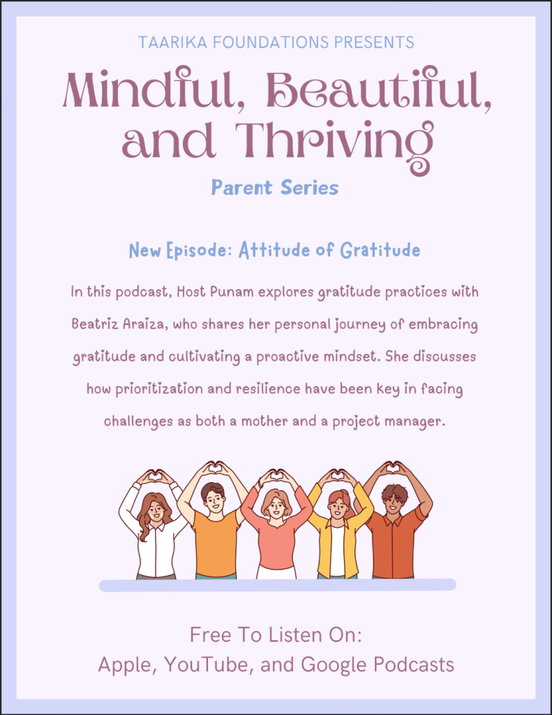In this podcast, host Punam explores gratitude practices with Beatriz Araiza, who shares her personal journey of embracing gratitude and cultivating a proactive mindset. She discusses how prioritization and resilience have been key in facing challenges as both a mother and a project manager.
