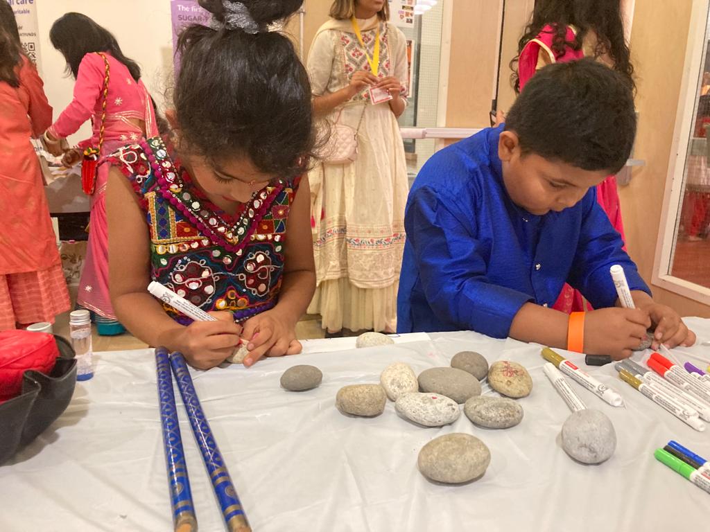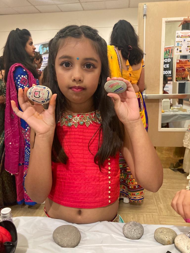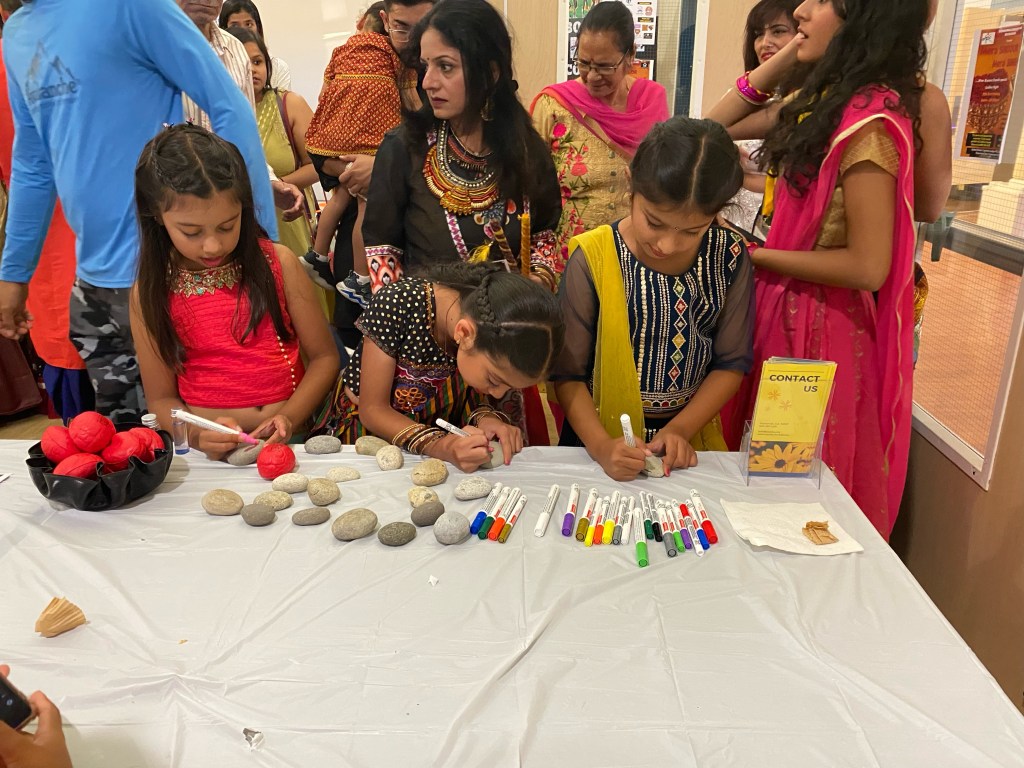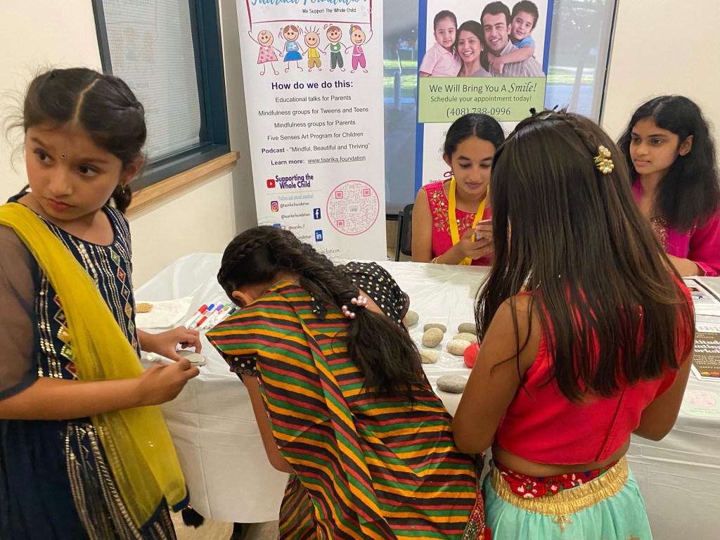 More recently, Taarika youth worked at a local Dandiya event. They taught children mindful rock art and spread information about mindfulness to local Bay Area parents and kids.