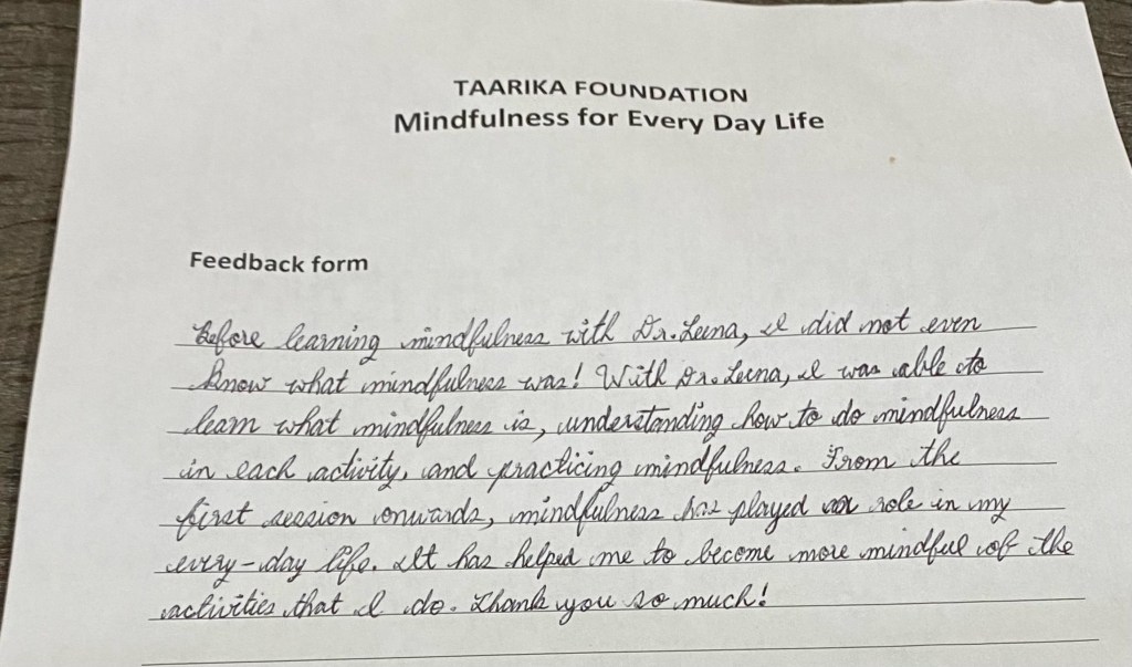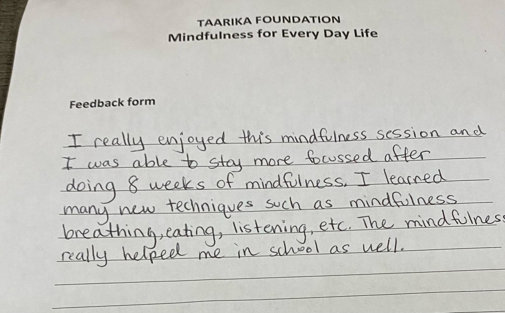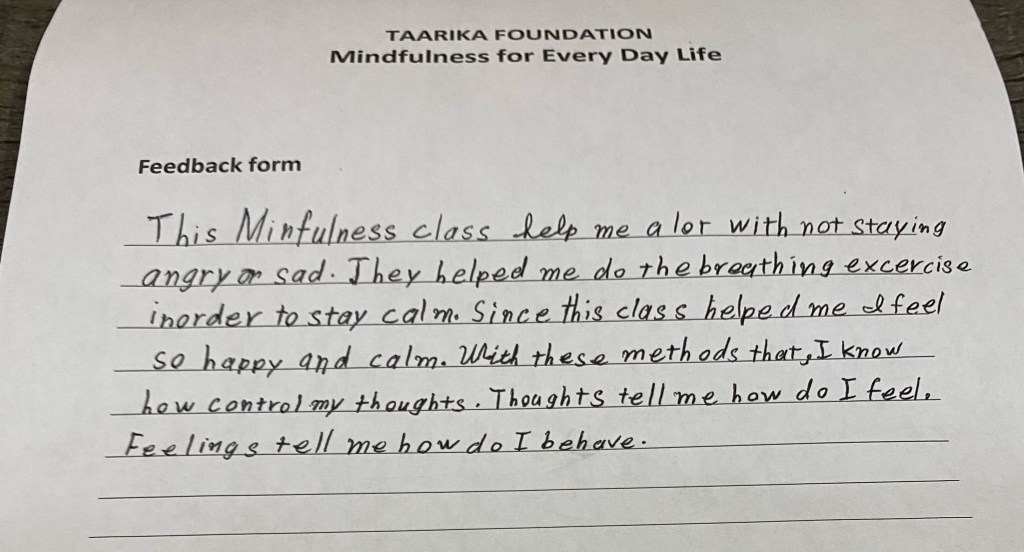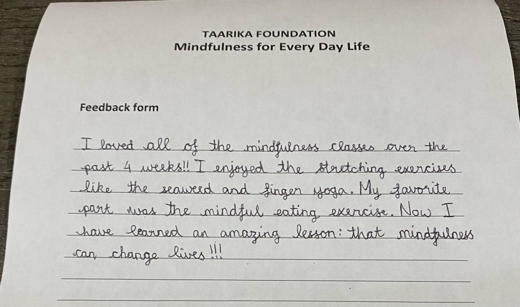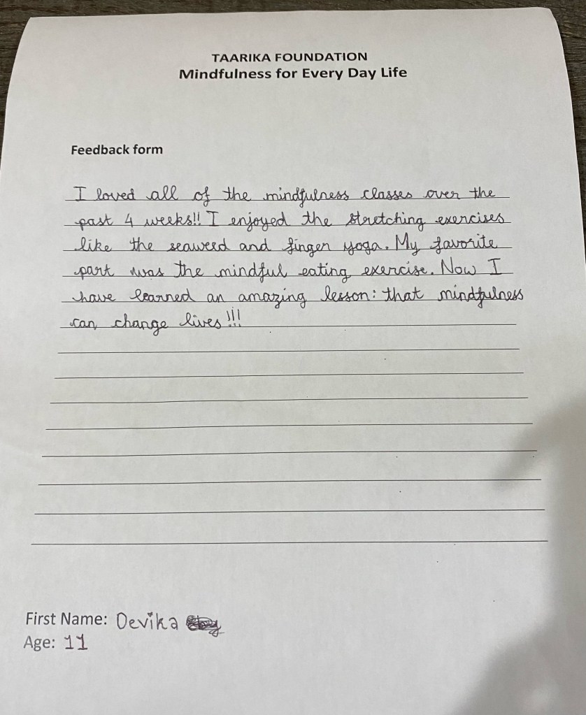 Our founder, Dr. Leena Khanzode, recently conducted a 8 session mindfulness series for tweens and received the following written feedback from the participants- 11-13 years old.