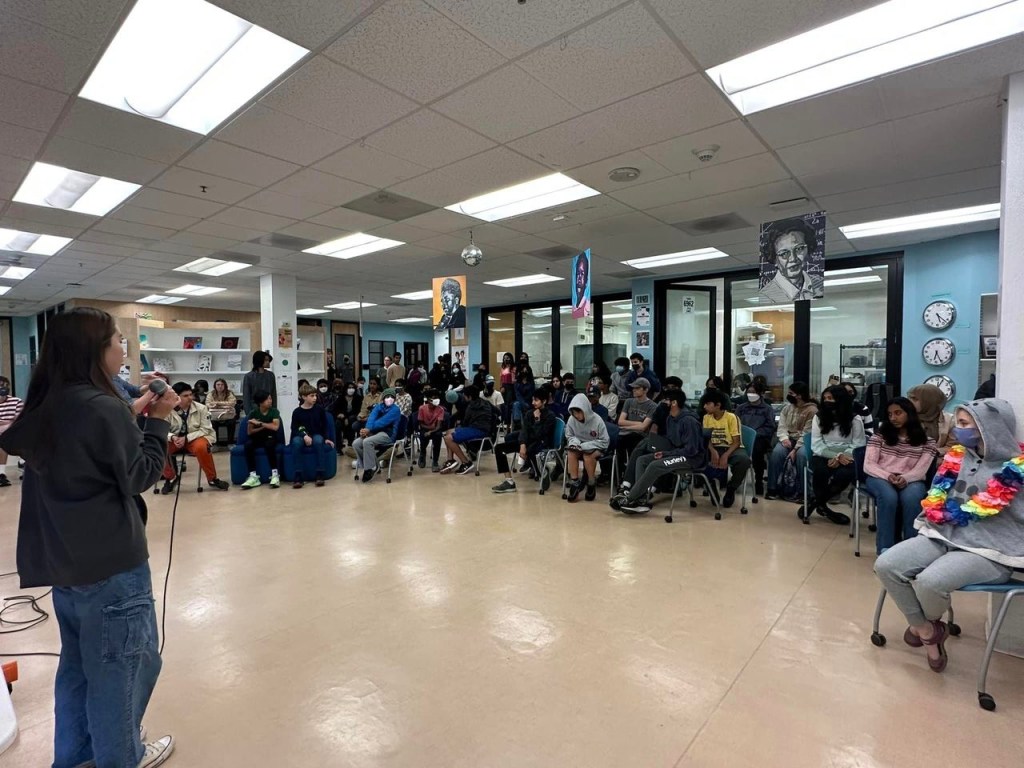 A big thanks to the Khan Lab School for inviting out founder to their student community meeting on May 9th to speak on the theme “De-stressing at KLS.” The students practiced mindfulness in a fun away using bubbles and “making rain.” One of the students even thanked our founders with a lei after listening to her story.