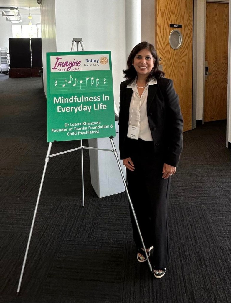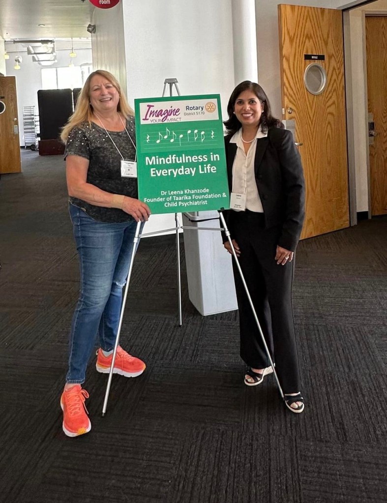 On April 29th, our founder, Dr. Leena Khanzode, spoke at the Rotary District 5170 Conference. She spoke about mindfulness and used exercises such as bubbles for audience participation.